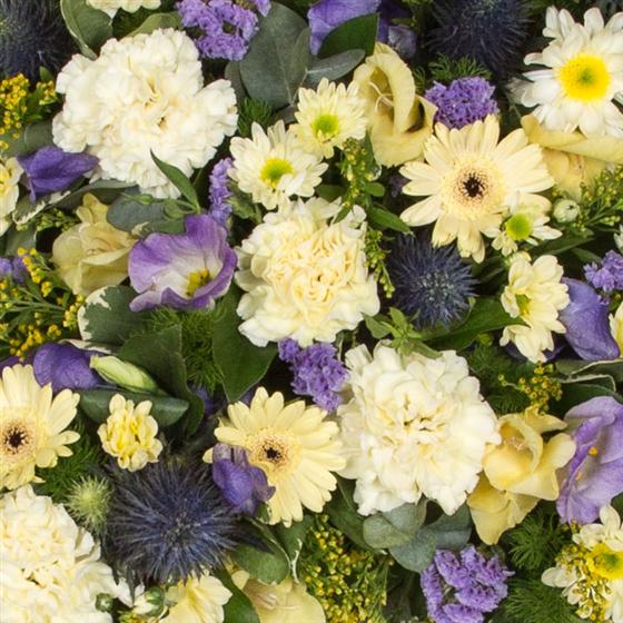 UK flower delivery nationwide by real local florists, Send funeral flowers and order this Loose Lemon & Lilac Cross delivered locally in and around the UK. Order direct and shop local.